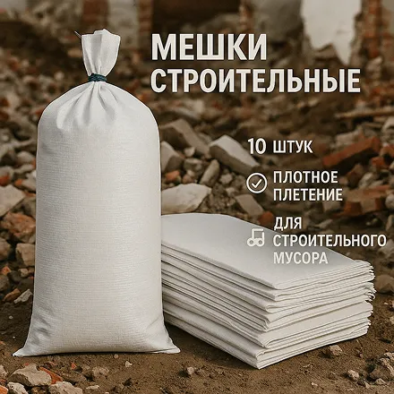 Устали от порванных пакетов при ремонте или уборке стройплощадки? Строительные мешки объемом 60 литров — это надежный и проверенный способ вывоза строительного мусора, щебня, старой плитки, гипсокартона, битого кирпича, песка и прочих отходов. Упаковка содержит 10 прочных мешков зелёного цвета, изготовленных из усиленного полипропилена.